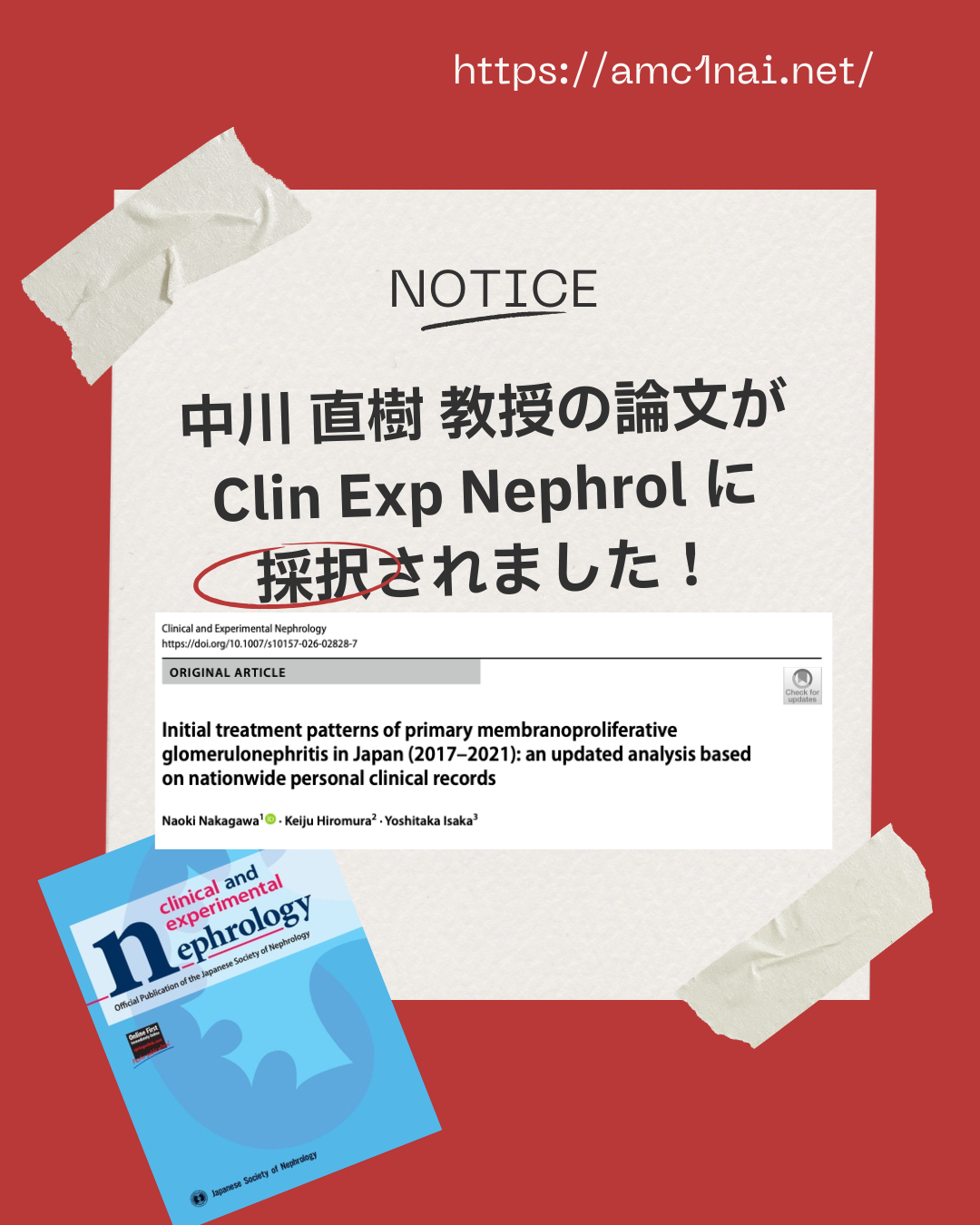 中川 直樹 教授の論文が、Clin Exp Nephrol …